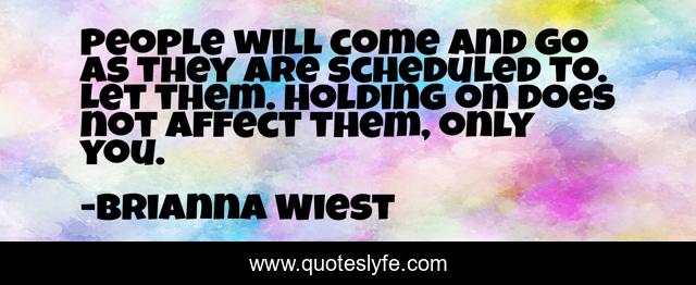 This page presents the quote "People will come and go as they are scheduled to. Let them. Holding on does not affect them, only you.". Author of this quote is Brianna Wiest. This quote is about relationships, advice, love, affection,.