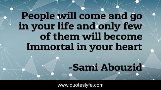 This page presents the quote "People will come and go in your life and only few of them will become Immortal in your heart". Author of this quote is Sami Abouzid. This quote is about love, affection,.