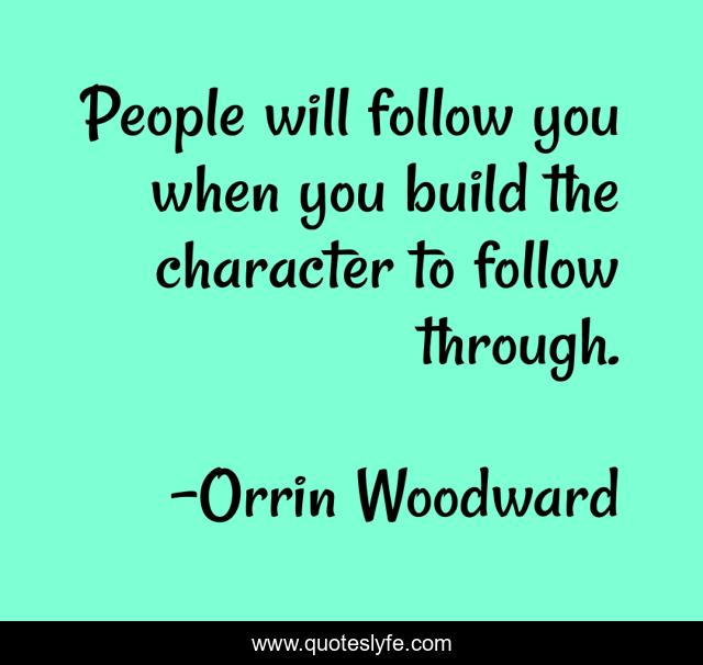 This page presents the quote "People will follow you when you build the character to follow through.". Author of this quote is Orrin Woodward. This quote is about leadership, character,.