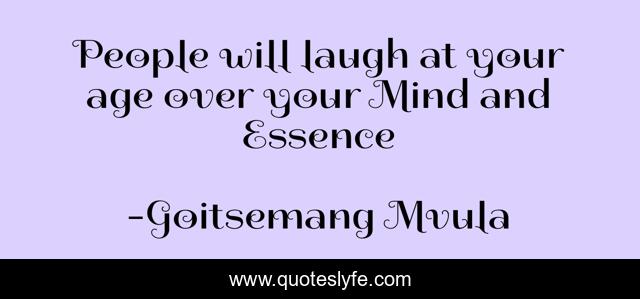 This page presents the quote "People will laugh at your age over your Mind and Essence". Author of this quote is Goitsemang Mvula. This quote is about ageism, essence, mind, laghter, laugh, mind-power,.