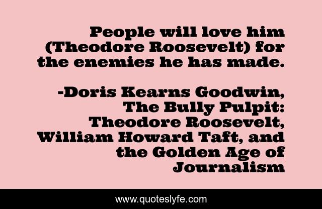 "Doris Kearns Goodwin, The Bully Pulpit: Theodore Roosevelt, William Howard Taft, and the Golden Age of Journalism Quotes." Quoteslyfe.com, 2025. Mon. 08 Dec. 2025. <https://www.quoteslyfe.com/quote/People-will-love-him-Theodore-Roosevelt-for-280393>.