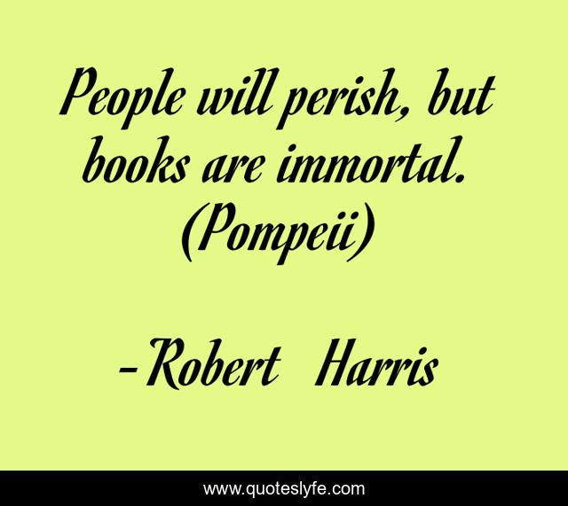 This page presents the quote "People will perish, but books are immortal. (Pompeii)". Author of this quote is Robert Harris. .