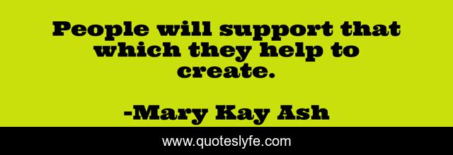 This page presents the quote "People will support that which they help to create.". Author of this quote is Mary Kay Ash. This quote is about helping, people,.