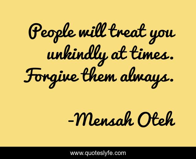 "Mensah Oteh Quotes." Quoteslyfe.com, 2025. Fri. 05 Dec. 2025. <https://www.quoteslyfe.com/quote/People-will-treat-you-unkindly-at-times-49256>.