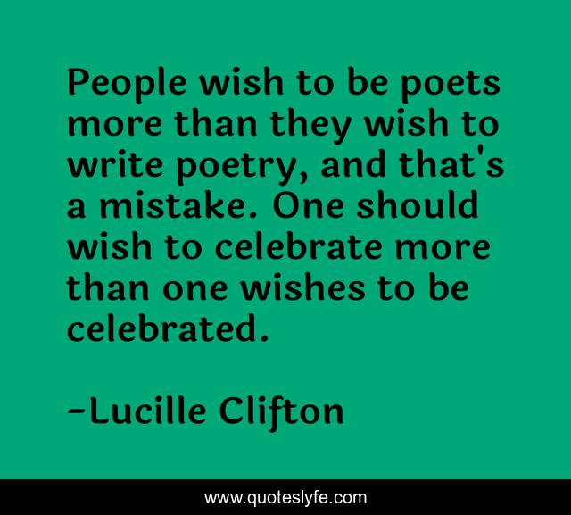 This page presents the quote "People wish to be poets more than they wish to write poetry, and that's a mistake. One should wish to celebrate more than one wishes to be celebrated.". Author of this quote is Lucille Clifton. This quote is about mistake, celebrate, people,.