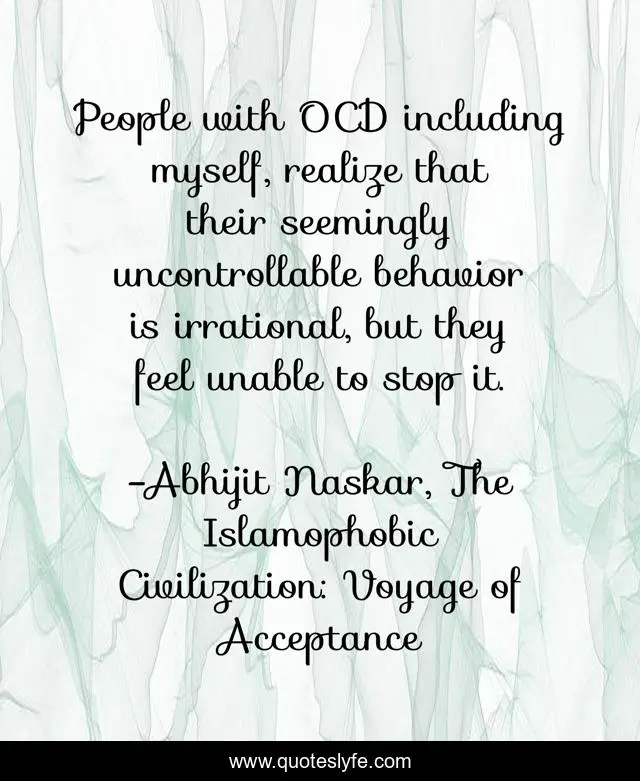 "Abhijit Naskar, The Islamophobic Civilization: Voyage of Acceptance Quotes." Quoteslyfe.com, 2025. Fri. 05 Dec. 2025. <https://www.quoteslyfe.com/quote/People-with-OCD-including-myself-realize-that-103412>.