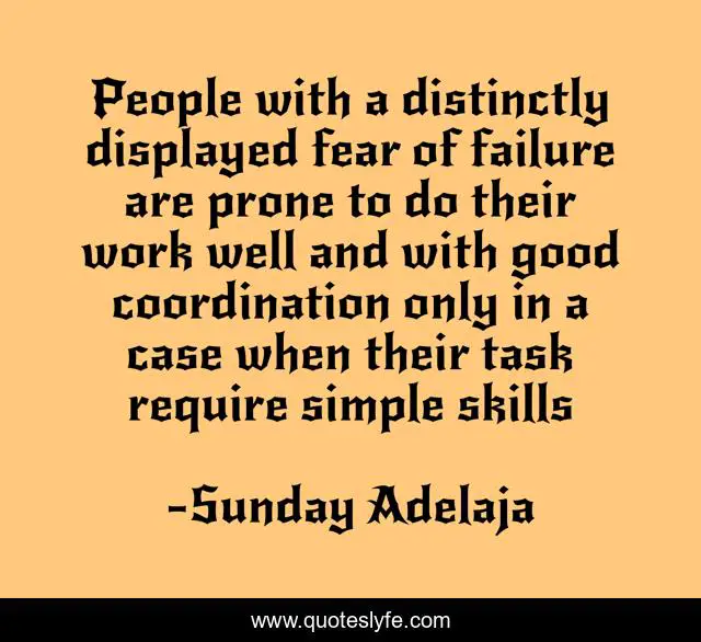 This page presents the quote "People with a distinctly displayed fear of failure are prone to do their work well and with good coordination only in a case when their task require simple skills". Author of this quote is Sunday Adelaja. This quote is about life, task, goal, simple, displayed, work, well, mission, calling,.