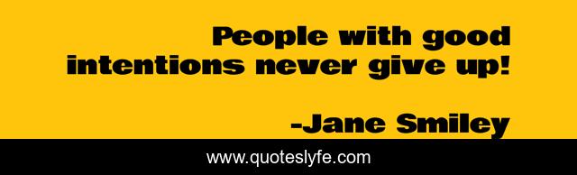 "Jane Smiley Quotes." Quoteslyfe.com, 2025. Sun. 07 Dec. 2025. <https://www.quoteslyfe.com/quote/People-with-good-intentions-never-give-up-271629>.