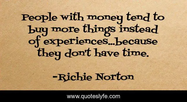 This page presents the quote "People with money tend to buy more things instead of experiences...because they don't have time.". Author of this quote is Richie Norton. This quote is about not-things, things, people, experience, millionaire, buy-experiences, experiences, time, freedom,.