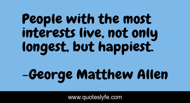 This page presents the quote "People with the most interests live, not only longest, but happiest.". Author of this quote is George Matthew Allen. .