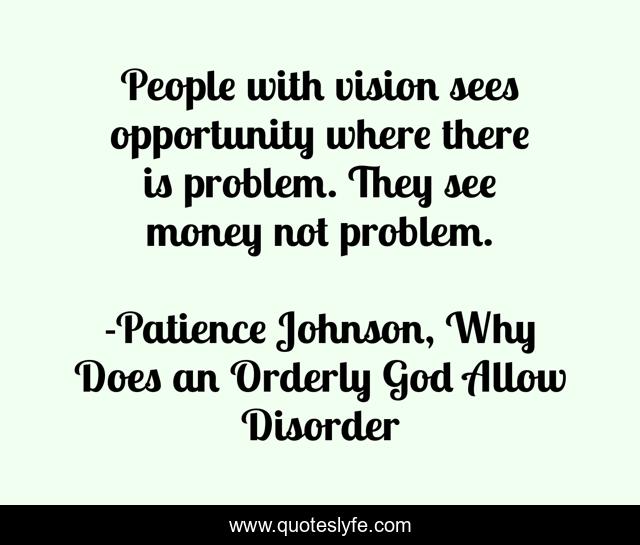 "Patience Johnson, Why Does an Orderly God Allow Disorder Quotes." Quoteslyfe.com, 2025. Mon. 08 Dec. 2025. <https://www.quoteslyfe.com/quote/People-with-vision-sees-opportunity-where-there-47896>.