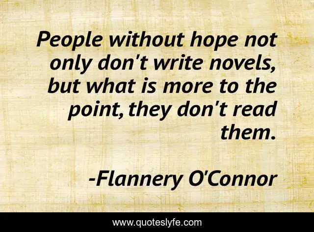 This page presents the quote "People without hope not only don't write novels, but what is more to the point, they don't read them.". Author of this quote is Flannery O'Connor. This quote is about hope, on-writing,.