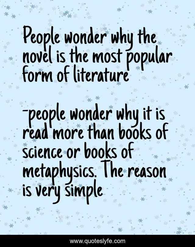 This page presents the quote "People wonder why the novel is the most popular form of literature". Author of this quote is people wonder why it is read more than books of science or books of metaphysics. The reason is very simple. .