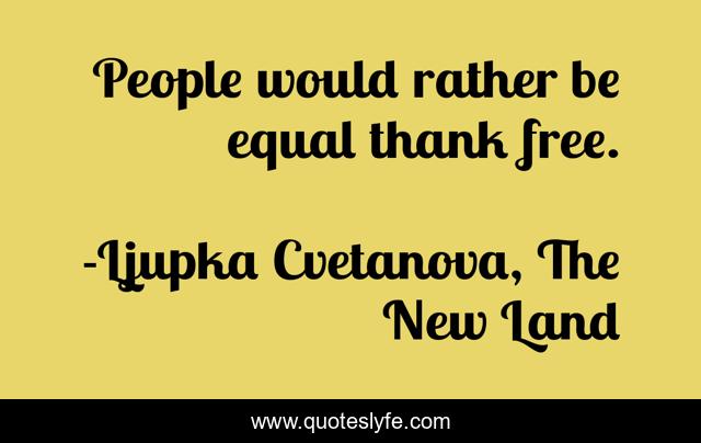 "Ljupka Cvetanova, The New Land Quotes." Quoteslyfe.com, 2025. Mon. 08 Dec. 2025. <https://www.quoteslyfe.com/quote/People-would-rather-be-equal-thank-free-54935>.