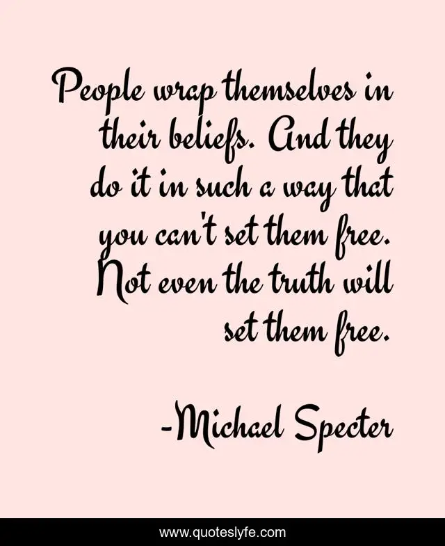"Michael Specter Quotes." Quoteslyfe.com, 2025. Mon. 08 Dec. 2025. <https://www.quoteslyfe.com/quote/People-wrap-themselves-in-their-beliefs-And-41814>.