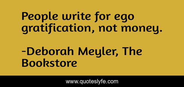 "Deborah Meyler, The Bookstore Quotes." Quoteslyfe.com, 2025. Sun. 07 Dec. 2025. <https://www.quoteslyfe.com/quote/People-write-for-ego-gratification-not-money-79944>.