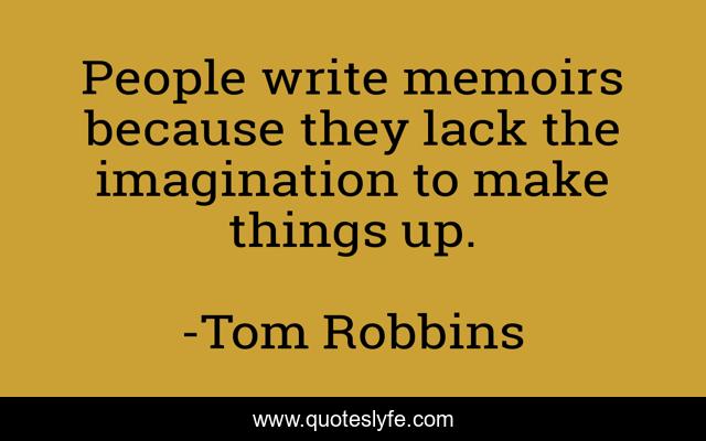 "Tom Robbins Quotes." Quoteslyfe.com, 2025. Fri. 05 Dec. 2025. <https://www.quoteslyfe.com/quote/People-write-memoirs-because-they-lack-the-317529>.