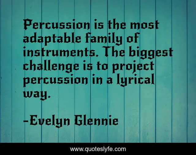 "Evelyn Glennie Quotes." Quoteslyfe.com, 2025. Sun. 07 Dec. 2025. <https://www.quoteslyfe.com/quote/Percussion-is-the-most-adaptable-family-of-299031>.