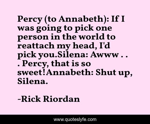 Percy (to Annabeth): If I was going to pick one person in the world to reattach my head, I'd pick you.Silena: Awww . . . Percy, that is so sweet!Annabeth: Shut up, Silena.