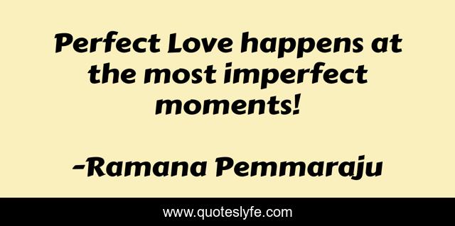 This page presents the quote "Perfect Love happens at the most imperfect moments!". Author of this quote is Ramana Pemmaraju. This quote is about love-at-first-sight-love, divine, love, soul-connection, affection,.