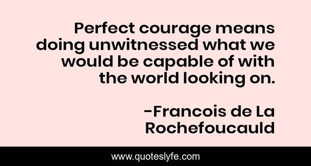 "Francois de La Rochefoucauld Quotes." Quoteslyfe.com, 2025. Fri. 05 Dec. 2025. <https://www.quoteslyfe.com/quote/Perfect-courage-means-doing-unwitnessed-what-we-262418>.