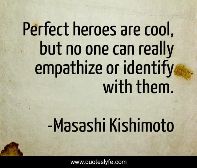 This page presents the quote "Perfect heroes are cool, but no one can really empathize or identify with them.". Author of this quote is Masashi Kishimoto. This quote is about perfect, heroes, identify,.
