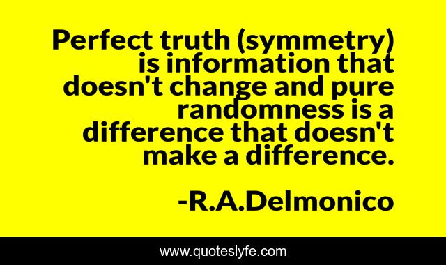 This page presents the quote "Perfect truth (symmetry) is information that doesn't change and pure randomness is a difference that doesn't make a difference.". Author of this quote is R.A.Delmonico. This quote is about information, truth,.