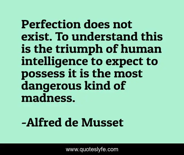 This page presents the quote "Perfection does not exist. To understand this is the triumph of human intelligence to expect to possess it is the most dangerous kind of madness.". Author of this quote is Alfred de Musset. .