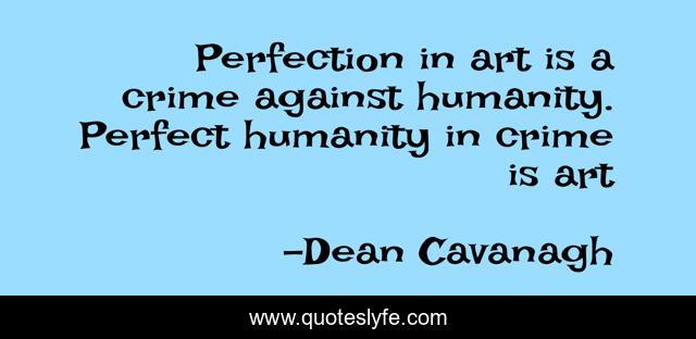This page presents the quote "Perfection in art is a crime against humanity. Perfect humanity in crime is art". Author of this quote is Dean Cavanagh. This quote is about art, perfection, crime,.