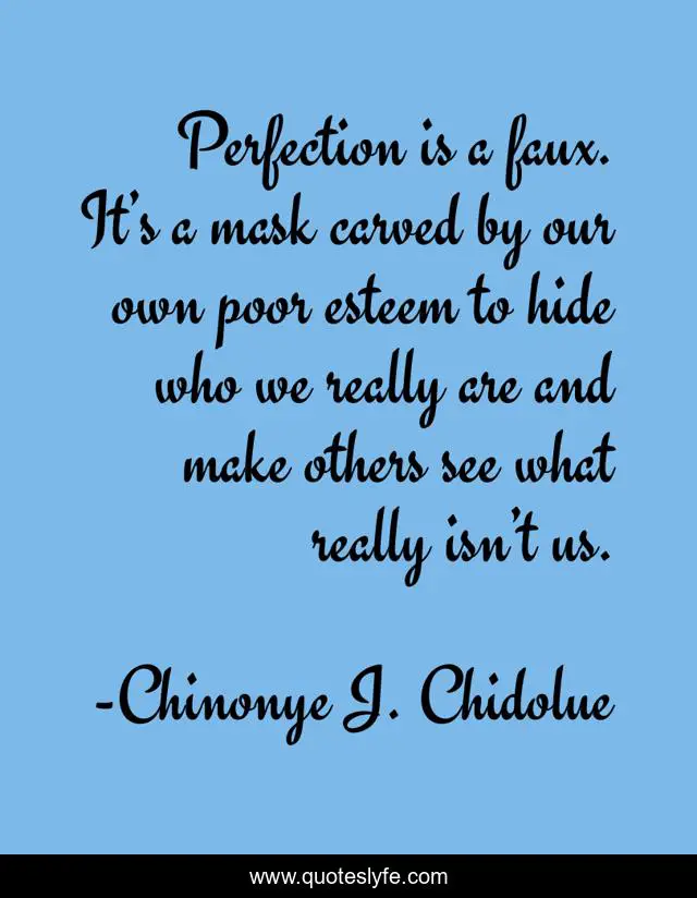 Perfection is a faux. It’s a mask carved by our own poor esteem to hide who we really are and make others see what really isn’t us.