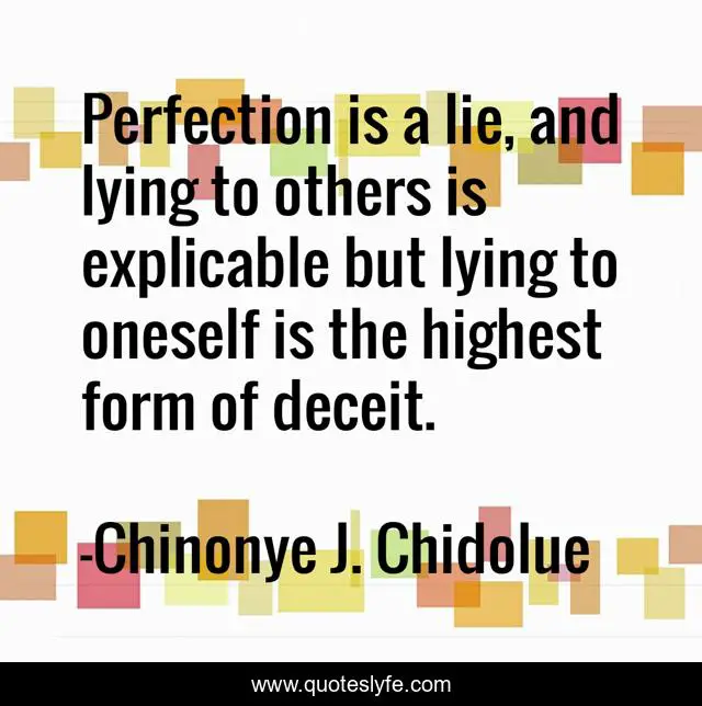 "Chinonye J. Chidolue Quotes." Quoteslyfe.com, 2025. Fri. 05 Dec. 2025. <https://www.quoteslyfe.com/quote/Perfection-is-a-lie-and-lying-to-140679>.