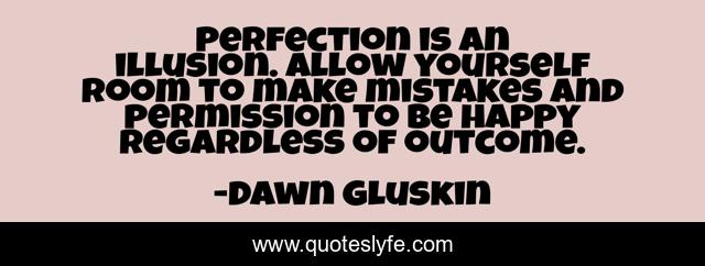 This page presents the quote "Perfection is an illusion. Allow yourself room to make mistakes and permission to be happy regardless of outcome.". Author of this quote is Dawn Gluskin. This quote is about control, imperfect, permission, acceptance, flow, mistakes, perfection, allow, happy,.