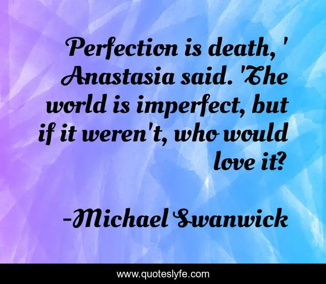 "Michael Swanwick Quotes." Quoteslyfe.com, 2025. Sun. 07 Dec. 2025. <https://www.quoteslyfe.com/quote/Perfection-is-death-Anastasia-said-The-world-81951>.