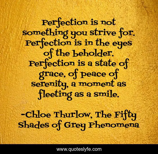 This page presents the quote "Perfection is not something you strive for. Perfection is in the eyes of the beholder. Perfection is a state of grace, of peace of serenity, a moment as fleeting as a smile.". Author of this quote is Chloe Thurlow, The Fifty Shades of Grey Phenomena. .