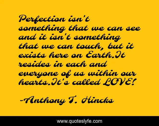 This page presents the quote "Perfection isn't something that we can see and it isn't something that we can touch, but it exists here on Earth.It resides in each and everyone of us within our hearts.It's called LOVE!". Author of this quote is Anthony T. Hincks. This quote is about reside, everyone, love, feel, philosophy, can-t-see, invisible, perfection, touch,.