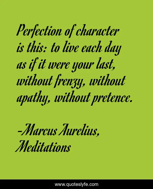 "Marcus Aurelius, Meditations Quotes." Quoteslyfe.com, 2025. Fri. 05 Dec. 2025. <https://www.quoteslyfe.com/quote/Perfection-of-character-is-this-to-live-21123>.