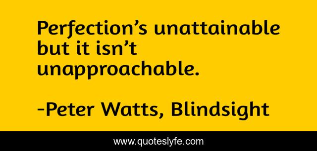 This page presents the quote "Perfection’s unattainable but it isn’t unapproachable.". Author of this quote is Peter Watts, Blindsight. This quote is about unattainable, unapproachable, perfection,.