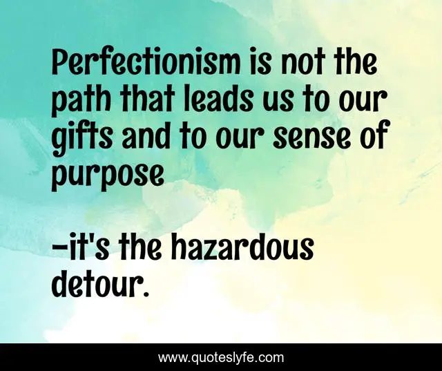 This page presents the quote "Perfectionism is not the path that leads us to our gifts and to our sense of purpose". Author of this quote is it's the hazardous detour.. .