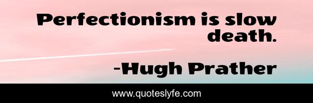 This page presents the quote "Perfectionism is slow death.". Author of this quote is Hugh Prather. .