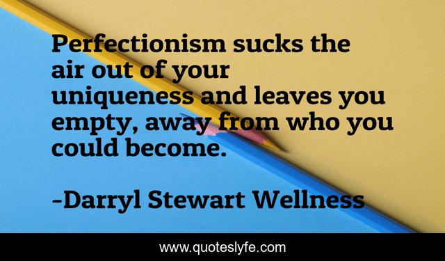 This page presents the quote "Perfectionism sucks the air out of your uniqueness and leaves you empty, away from who you could become.". Author of this quote is Darryl Stewart Wellness. This quote is about shame, brene-brown, fear, ashamed, perfectionism,.