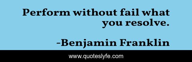 This page presents the quote "Perform without fail what you resolve.". Author of this quote is Benjamin Franklin. This quote is about commitment, belief,.