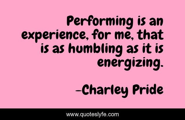This page presents the quote "Performing is an experience, for me, that is as humbling as it is energizing.". Author of this quote is Charley Pride. This quote is about me, humbling, performing,.