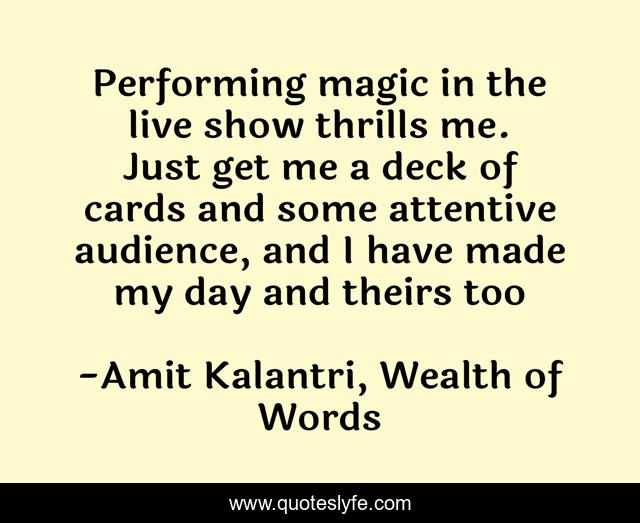 "Amit Kalantri, Wealth of Words Quotes." Quoteslyfe.com, 2025. Sat. 06 Dec. 2025. <https://www.quoteslyfe.com/quote/Performing-magic-in-the-live-show-thrills-80201>.