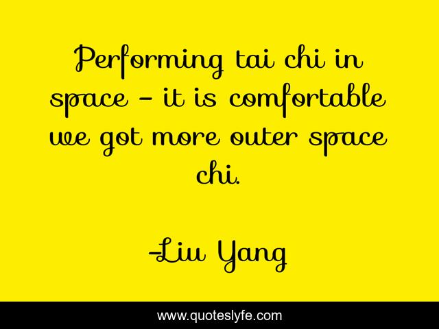 This page presents the quote "Performing tai chi in space - it is comfortable we got more outer space chi.". Author of this quote is Liu Yang. This quote is about outer space, comfortable,.