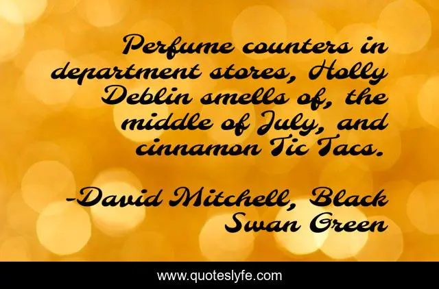 "David Mitchell, Black Swan Green Quotes." Quoteslyfe.com, 2025. Sun. 07 Dec. 2025. <https://www.quoteslyfe.com/quote/Perfume-counters-in-department-stores-Holly-Deblin-171872>.