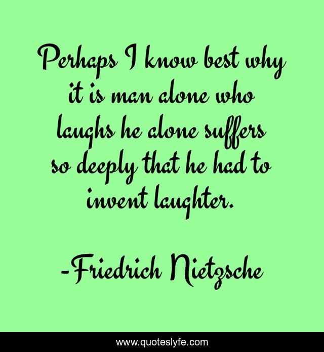 This page presents the quote "Perhaps I know best why it is man alone who laughs he alone suffers so deeply that he had to invent laughter.". Author of this quote is Friedrich Nietzsche. This quote is about laughter, best, man,.