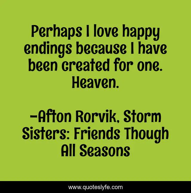 "Afton Rorvik, Storm Sisters: Friends Though All Seasons Quotes." Quoteslyfe.com, 2025. Sat. 06 Dec. 2025. <https://www.quoteslyfe.com/quote/Perhaps-I-love-happy-endings-because-I-183487>.