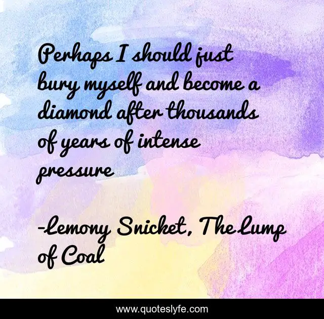 This page presents the quote "Perhaps I should just bury myself and become a diamond after thousands of years of intense pressure". Author of this quote is Lemony Snicket, The Lump of Coal. This quote is about diamond, coal, diamonds, dark-humor, christmas, lemony-snicket,.