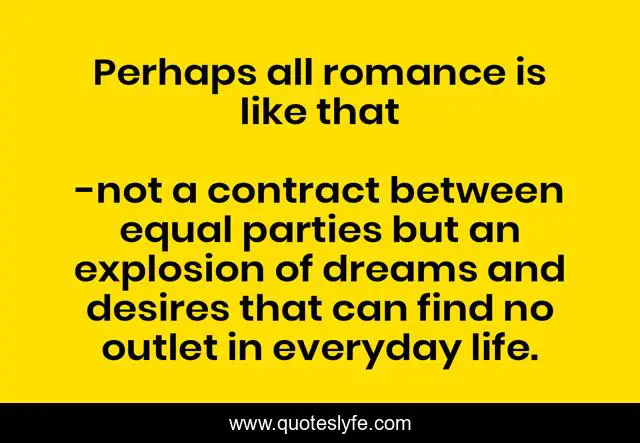 "not a contract between equal parties but an explosion of dreams and desires that can find no outlet in everyday life. Quotes." Quoteslyfe.com, 2025. Fri. 05 Dec. 2025. <https://www.quoteslyfe.com/quote/Perhaps-all-romance-is-like-that-100903>.