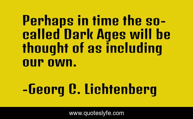 This page presents the quote "Perhaps in time the so-called Dark Ages will be thought of as including our own.". Author of this quote is Georg C. Lichtenberg. This quote is about thought, dark, time,.